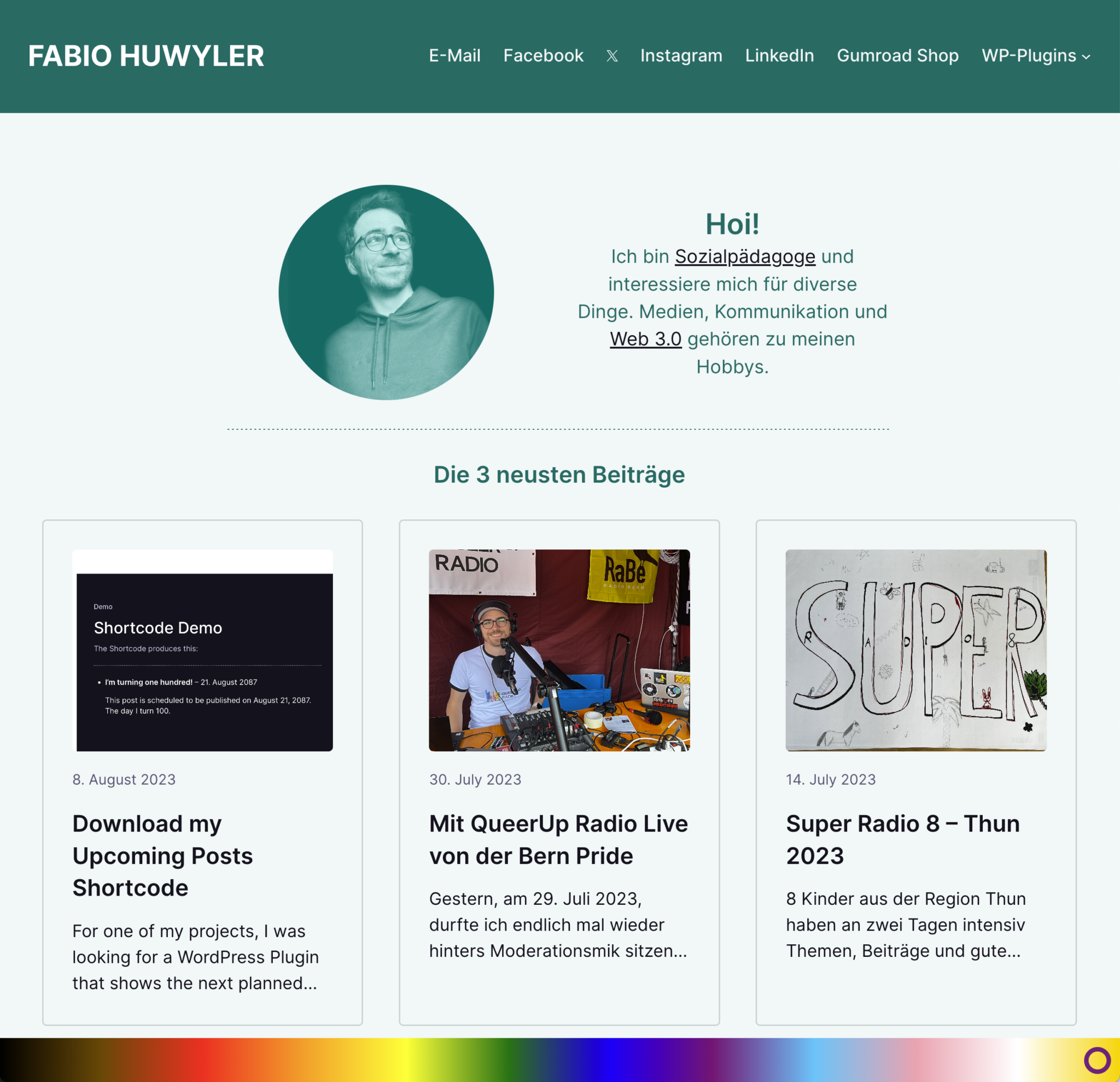Download my Upcoming Posts Shortcode For one of my projects, I was looking for a WordPress Plugin that shows the next planned posts… Portfolio 8. August 2023 byFabio Huwyler
